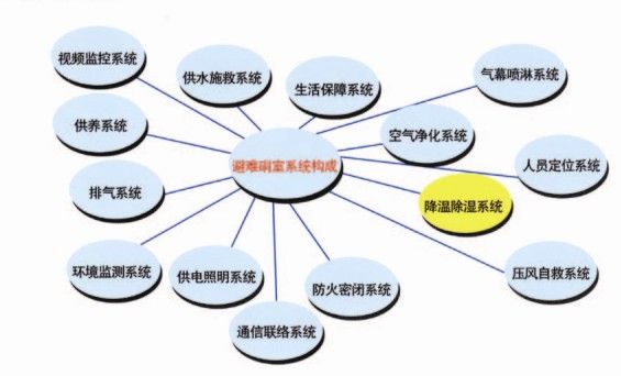 2、降溫除濕系統(tǒng)作為避難硐室的部件之一 ,可為硐室提供適宜的溫度和濕度,避難人員的生存舒適度。
